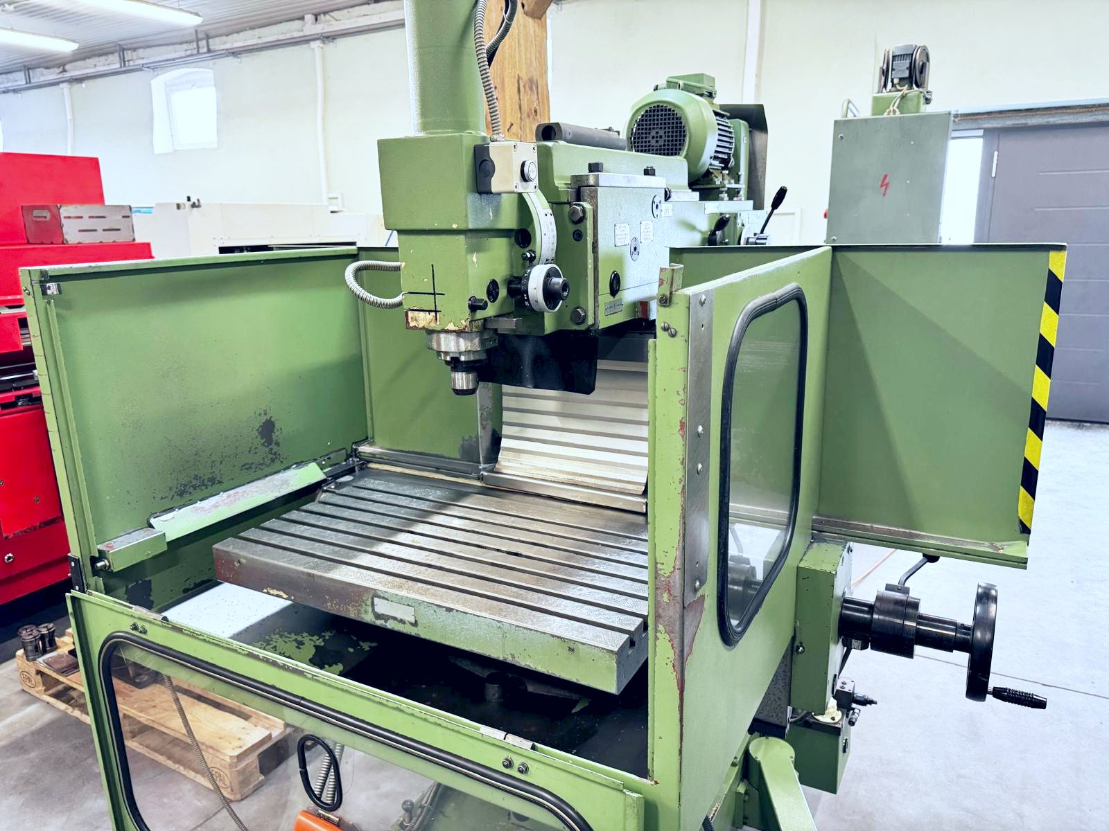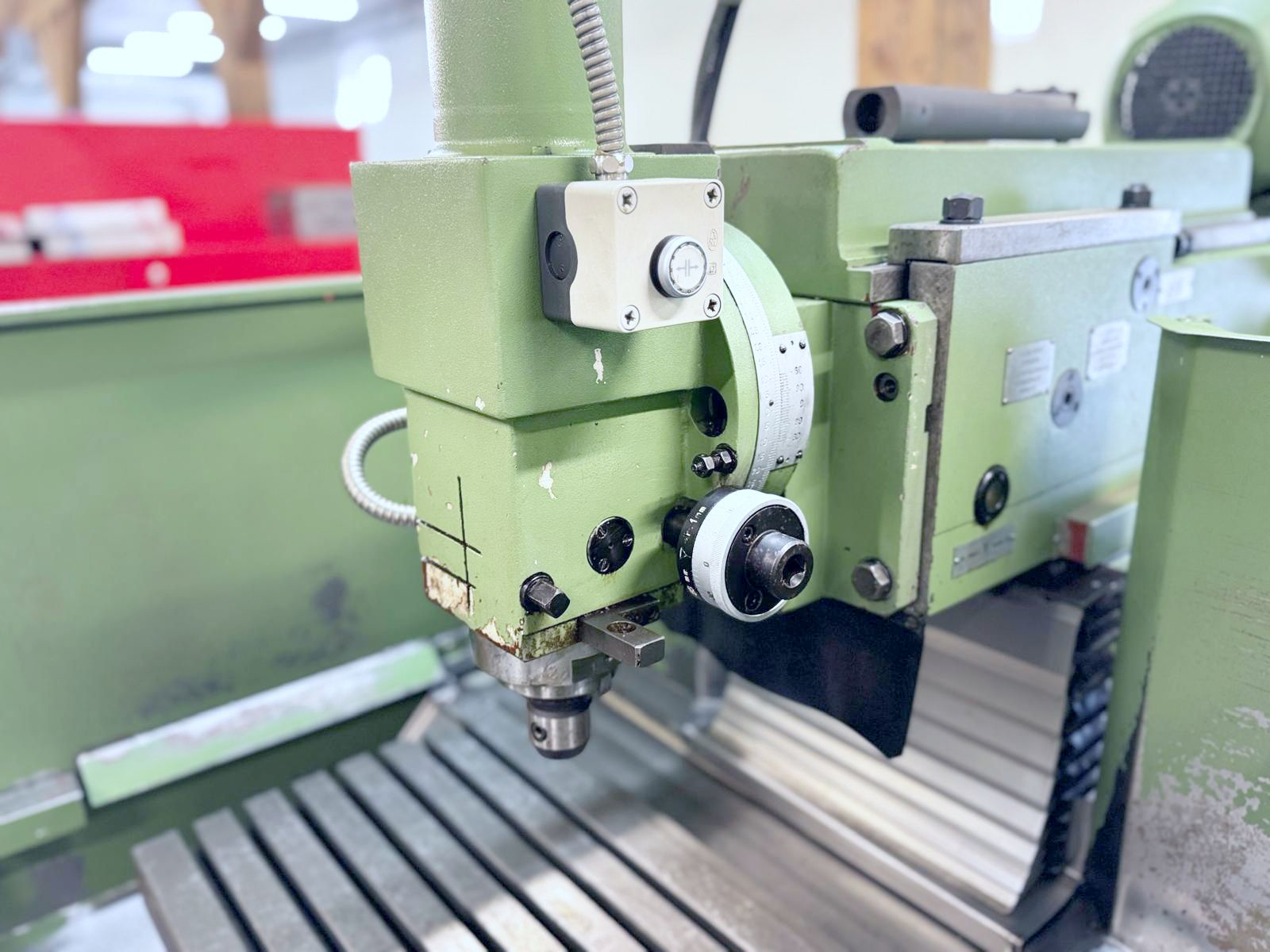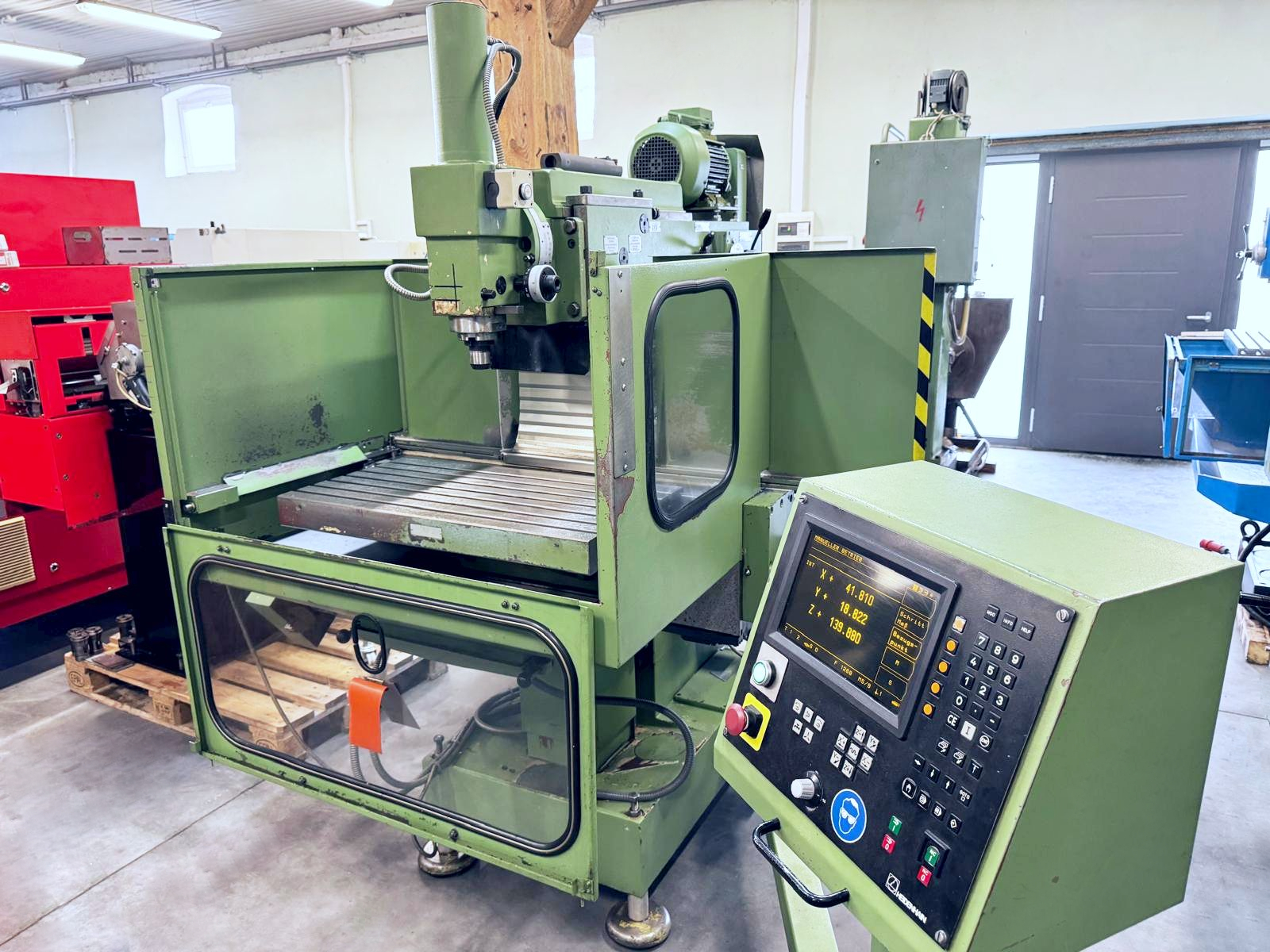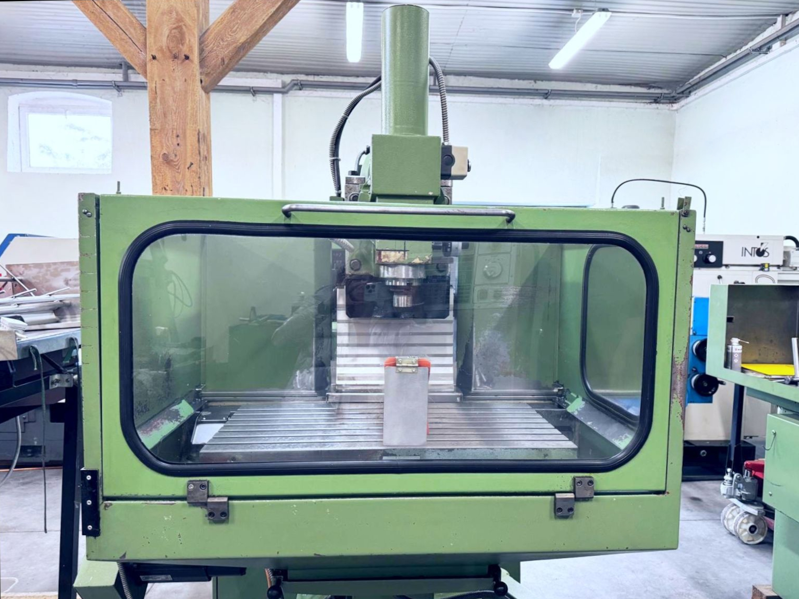 Używana frezarka AVIA FNF 40C w bardzo dobrym stanie to wszechstronna maszyna umożliwiająca zarówno pracę konwencjonalną, jak i sterowaną cyfrowo HEIDENHAIN TNC 124. Zakres roboczy X 620 mm, Y 420 mm, Z 380 mm pozwala na obróbkę średnich detali narzędziowych i produkcyjnych.