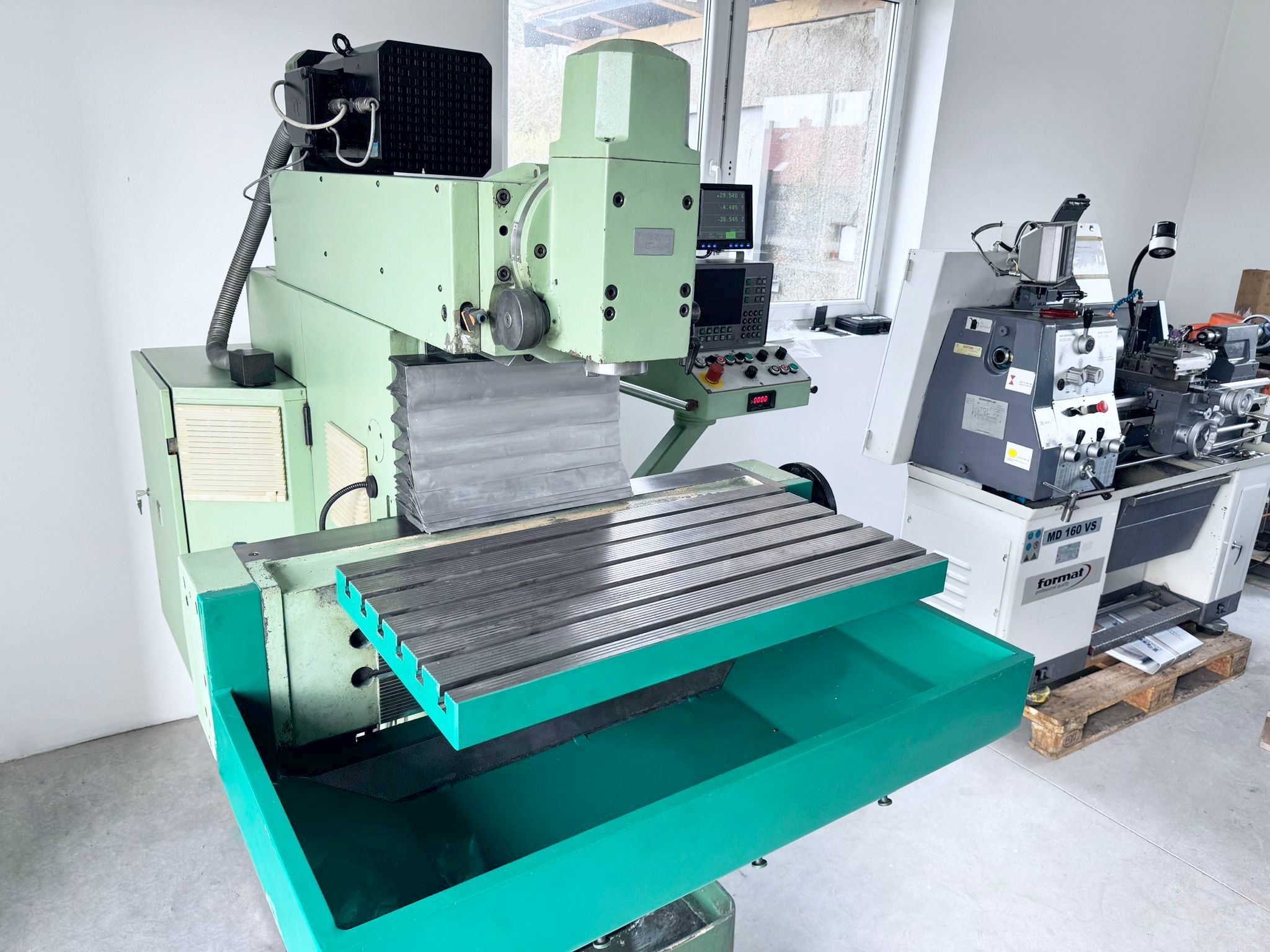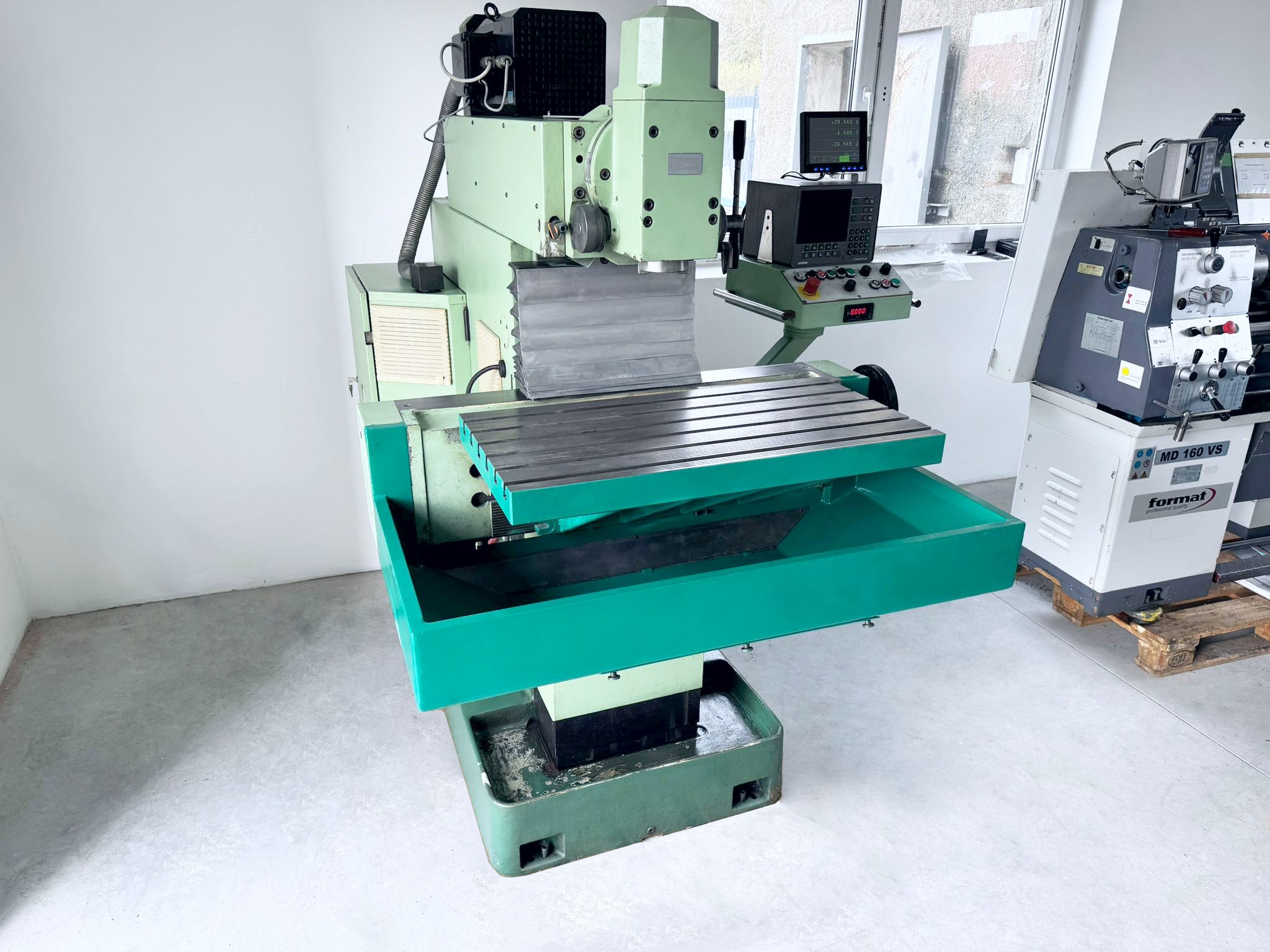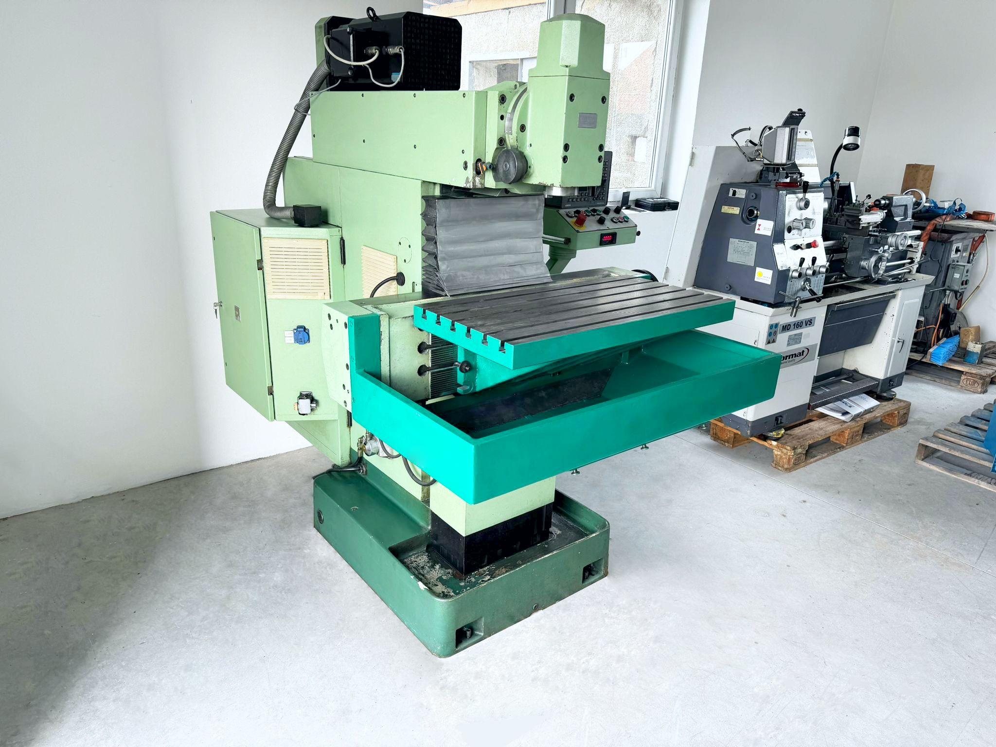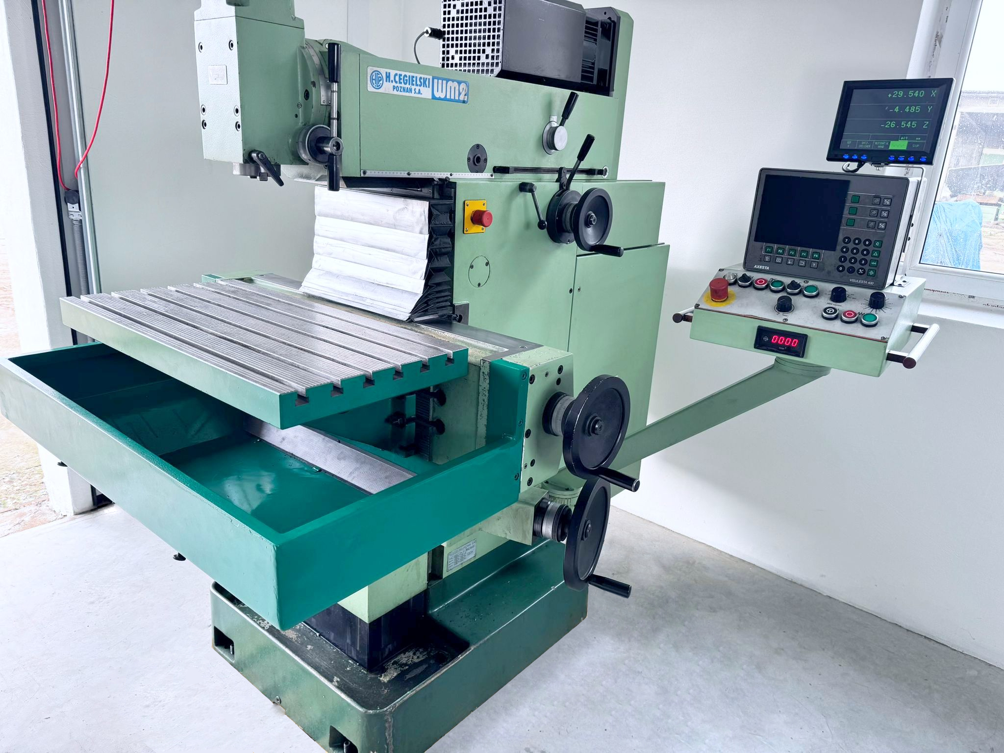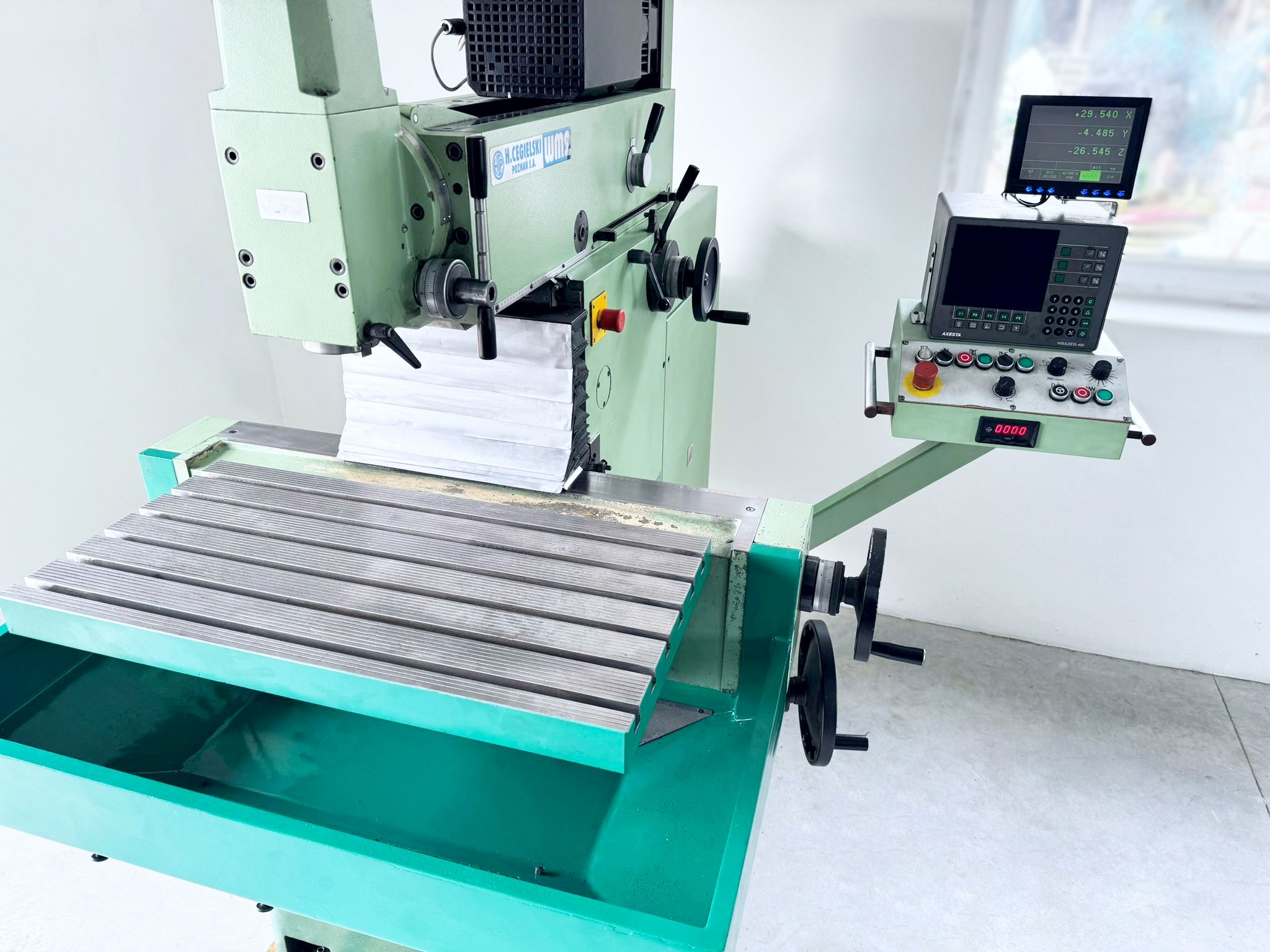 Maszyna pochodzi z Niemiec, jest w 100% sprawna w stanie bardzo (bardzo!) dobrym! Frezarka jest podłączona – można ją przetestować!