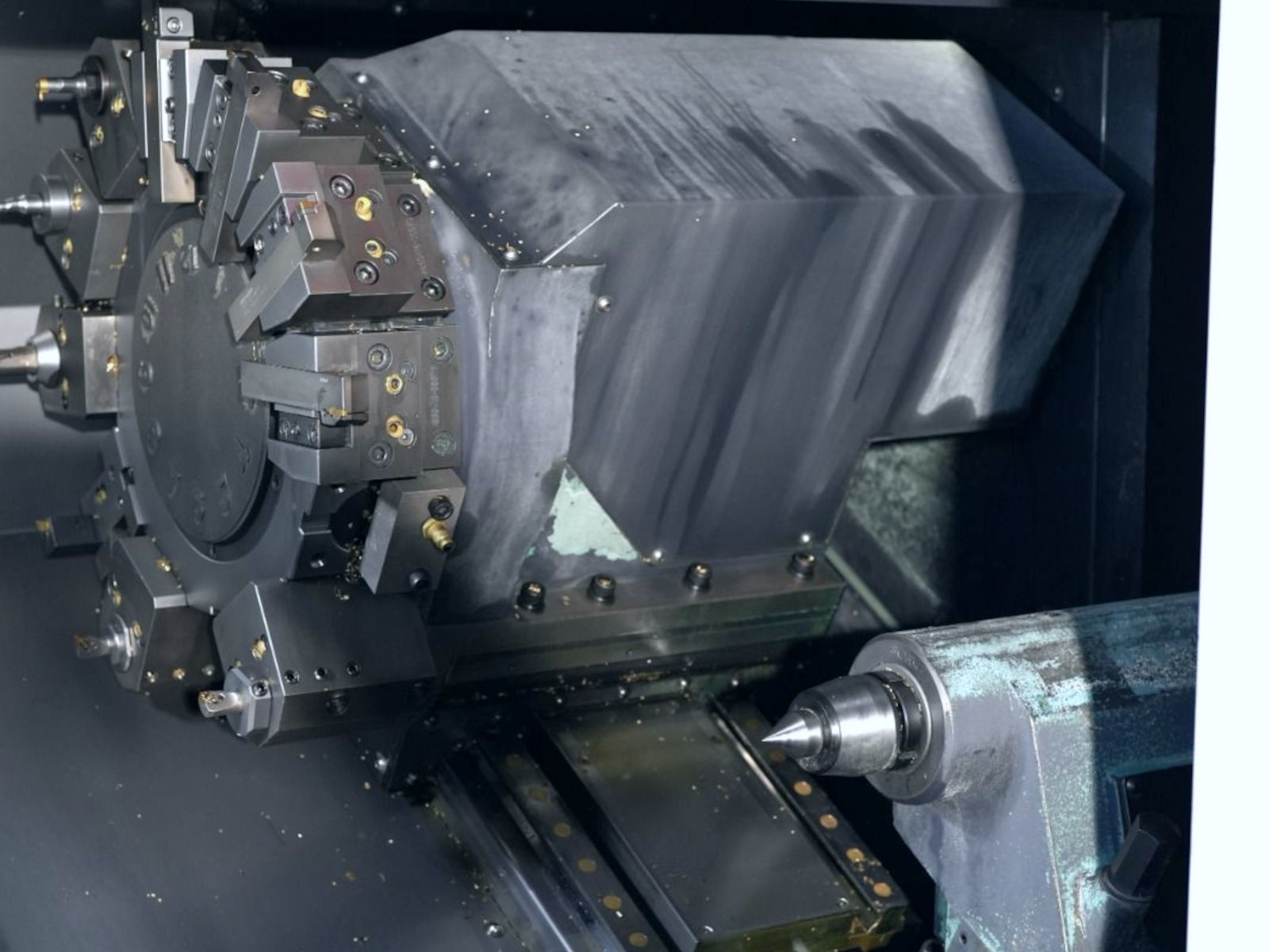 Tokarka charakteryzuje się niskim przebiegiem wrzeciona – około 4 221 godzin, co potwierdza bardzo dobry stan techniczny oraz duży potencjał dalszej eksploatacji. Solidna, masywna konstrukcja o wadze około 4 100 kg minimalizuje drgania i przekłada się na wysoką powtarzalność obróbki.